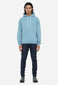 Relaxed fit hoodie with a dropped shoulder fit in custom knit French terry. Kangaroo pockets at the waist, drawstring closure at the hood. Rib knit waist and cuffs. Made in Los Angeles.